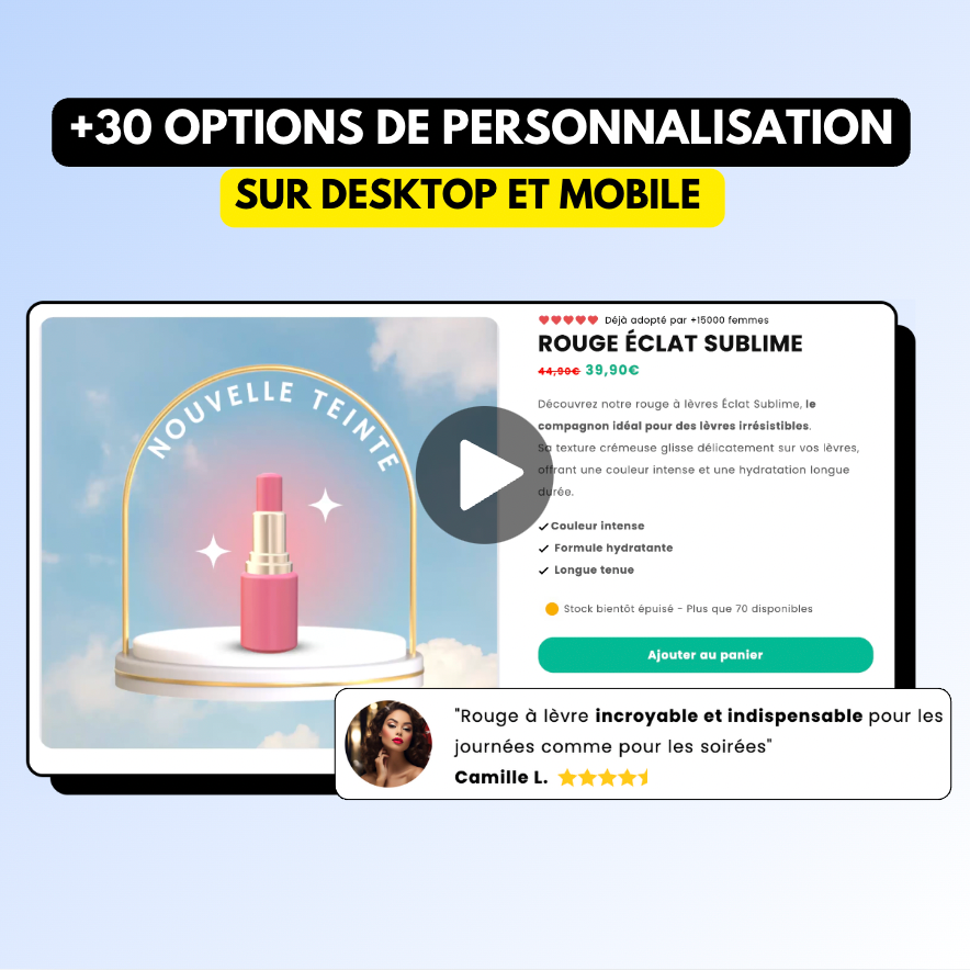 100% personnalisable - plus de 40 options de personnalisation sur desktop et sur mobile.