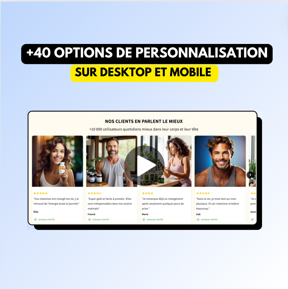 100% personnalisable - plus de 40 options de personnalisation sur desktop et sur mobile.