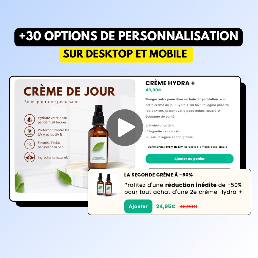 100% personnalisable - plus de 40 options de personnalisation sur desktop et sur mobile.